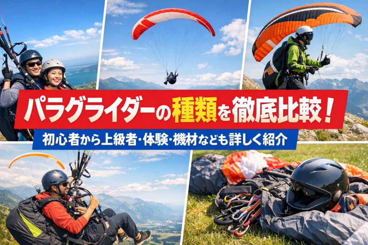 この記事では、スキルレベルや用途ごとの種類比較、ハーネスや補助機材、ライセンス取得のポイントまで、最新情報を交えて幅広く解説します。これからパラグライダーを始めたい方はもちろん、さらにステップアップしたい方にも、最適な選び方や実践的なヒントが見つかります。