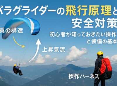 パラグライダーの離陸方法の基礎知識と安全対策!初心者が知るべき装備や風の見極め方 2025.10.24 「パラグライダーで安全に離陸できる自信がない…」「何から準備すればいいの?」と不安を感じていませんか?実は、パラグライダーの離陸方法には風速3~4m/sが最適とされる明確な基準や、体重・健康条件など安全を守るための細かなルールがあります... 続きを読む