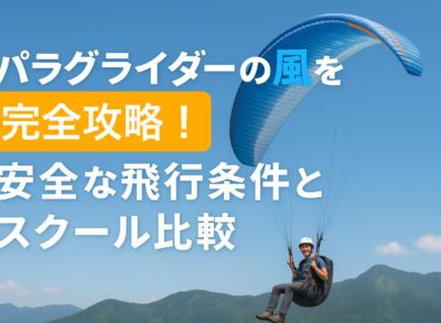 パラグライダーの風を完全攻略!安全な飛行条件とスクール比較について 2025.10.18 パラグライダーで空を飛ぶとき、風の強さや向きがフライトの安全性・体験の満足度を大きく左右することをご存じですか?実際に国内主要パラグライダースクールでは、【3〜7m/s】の風速を目安にフライト可否を判断しており、これを超えると体験コースが中止... 続きを読む