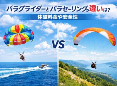 パラグライダーとパラセーリングの違いは?体験料金や安全性 2026.04.06 「パラグライダー」と「パラセーリング」、どちらも空を舞うアクティビティとして高い人気を誇っていますが、その違いを正確に説明できる方は意外と少ないのではないでしょうか。実は、体験できるパラグライダーの施設は全国で約200カ所、一方でパラセーリ... 続きを読む