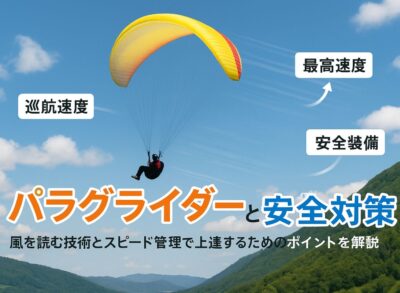 パラグライダーの風を完全攻略!安全な飛行条件とスクール比較について 2025.10.18 パラグライダーで空を飛ぶとき、風の強さや向きがフライトの安全性・体験の満足度を大きく左右することをご存じですか?実際に国内主要パラグライダースクールでは、【3〜7m/s】の風速を目安にフライト可否を判断しており、これを超えると体験コースが中止... 続きを読む