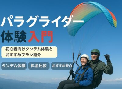 パラグライダーでタンデム体験の基礎と料金比較!初心者も安心のおすすめプラン徹底解説 2025.12.12 「空から見下ろす絶景を、あなたも体験してみませんか?パラグライダーでのタンデムは、【経験豊富なインストラクター】と二人一緒にフライトできるため、初心者でも安心して挑戦できるアクティビティです。実際に、国内大手パラグライダースクールでは、... 続きを読む